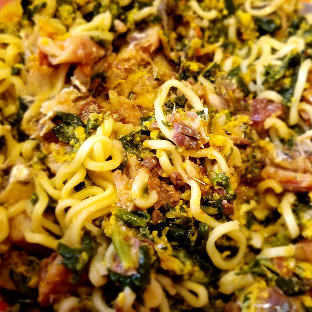 The finished item is on the left and on the right is mearly a serving suggestion. This is 1 packet of noodles such as indomie, shan, knorr, maggi, chings, etcectera. Cook noodles according to instructions on package then mix the spinach and egg with it if you wish and add 1 can of any type of oily fish such as sardines………….. You can also eat it with naan, pita bread, rice or quinoa too.