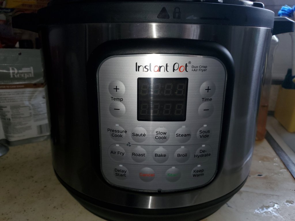 Wait until the button pops up which signals that it is pressurised. When you tap any one of these buttons for each function press start and it starts cooking and when time is up it lets you know as it goes through keep warm or not. When ready press the quick release button and this gizmo will depressurize.