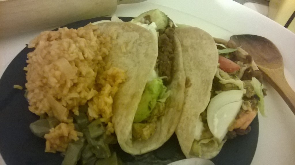 Vegans and vegretarians can forgo the meat and use the veggie crumbles or just use the frejoles and the toppings I am going to mention in a bit. You may want to put vegan cheese and I am sorry there is no vegan substitue for any type of Mexican cheese which is a must. There is vegan yogurt however. I have seen it, Use either plain yogurt or sour cream along with the frejoles and other fillings of choice. Add 1 slice of avacado or add Guacamole, slice onion or shallot and tomato in to half moon slices and add these to your taco too and either use iceberg or even Boston baby lettuce in your taco too. This can be cut in to tiny pieces. Serve with a side of spanish rice and frejoles with crumbly cheese on top. Last but not least use a lime wedge to squirt lime juice on your taco.